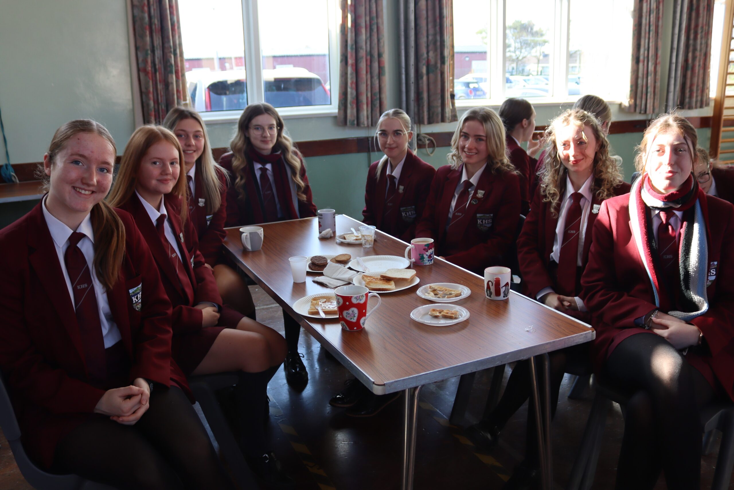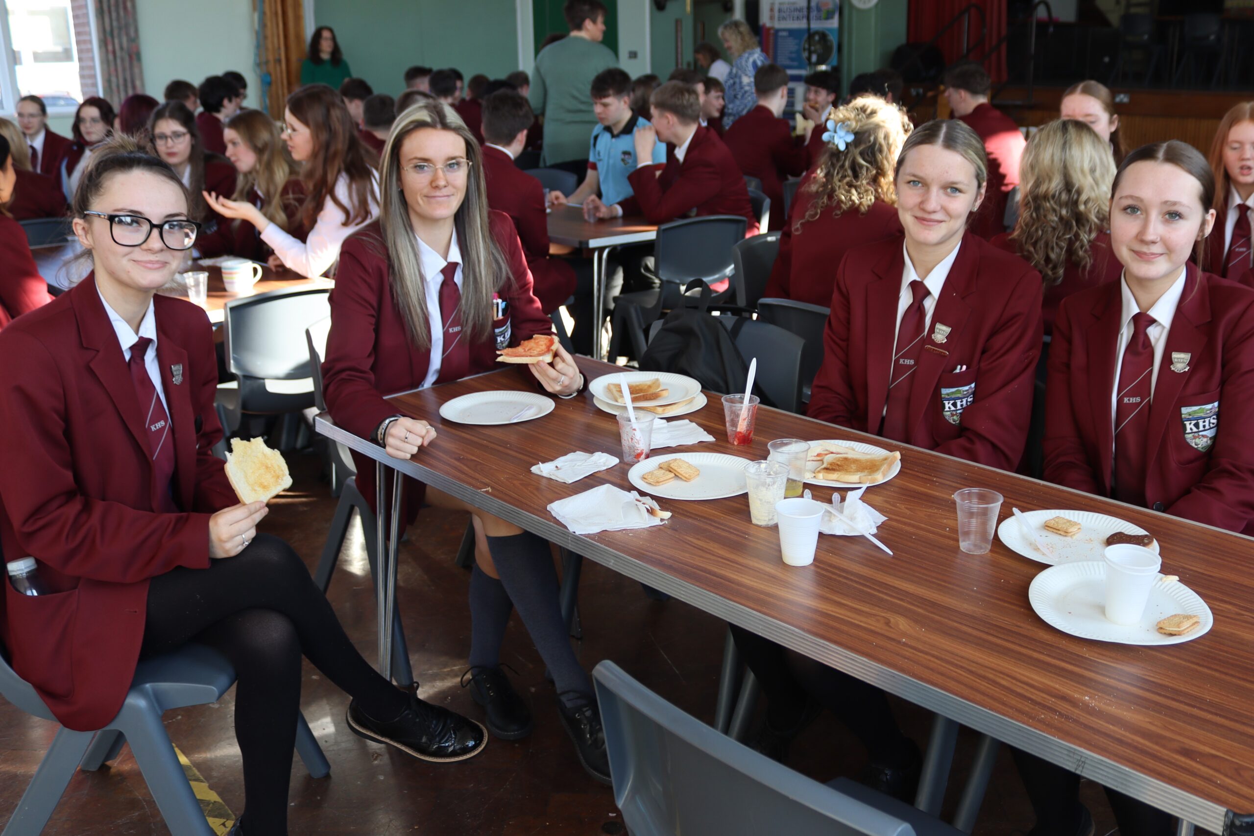 This morning during our PD period, Mrs Annett, Mrs Butler and Mrs Graham-McMath decided to treat their form classes to some tea, toast and biscuits. This was a way to say thank-you for everything the pupils do on a daily basis to help with the running of KHS: supervision duty at breaktime and lunchtime; help with the Paired reading programme; work with our Anti-Bullying ambassadors etc. etc. It was also a great way to fill them up before they embark on their 24 hour fast for New Beginnings.